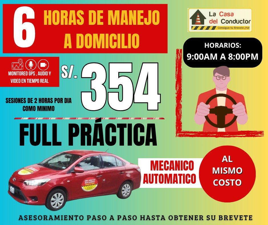 PAQUETE DE 6 HORAS FULL PRATICAS DE MANEJO